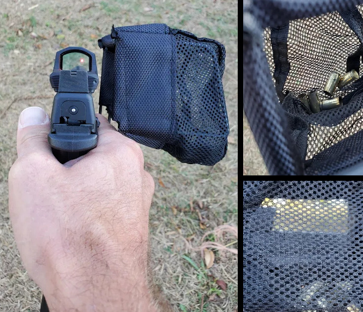In action, the Gen2 delivers smooth, dependable brass collection that lives up to its precision-shooter billing. As rounds cycle, the catcher’s angled funnel and expansive heat-resistant mesh snag casings right out of ejection, directing them into a spacious, ventilated pouch. The mesh isn’t just for airflow—it’s built to withstand the intense heat from rapid-fire strings, preventing warping or melting that plagues cheaper alternatives. You’ll notice how lightweight the whole unit is, clocking in well under traditional catchers, so it won’t fatigue your wrist during extended sessions. Emptying is a snap: unzip the pouch, pour out your pristine brass, and reset. Whether you’re dry-firing for muscle memory or live-firing for accuracy, this catcher keeps casings contained without rattling or obstructing your sights. It’s a quiet, efficient partner that enhances your flow, ensuring every shot counts toward better scores or safer carry habits.